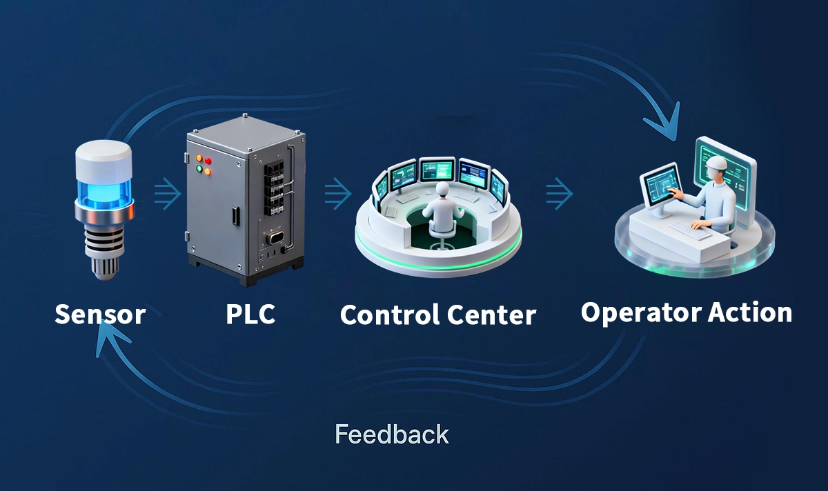 Real-Time Monitoring: Displays process variables via operator dashboards.